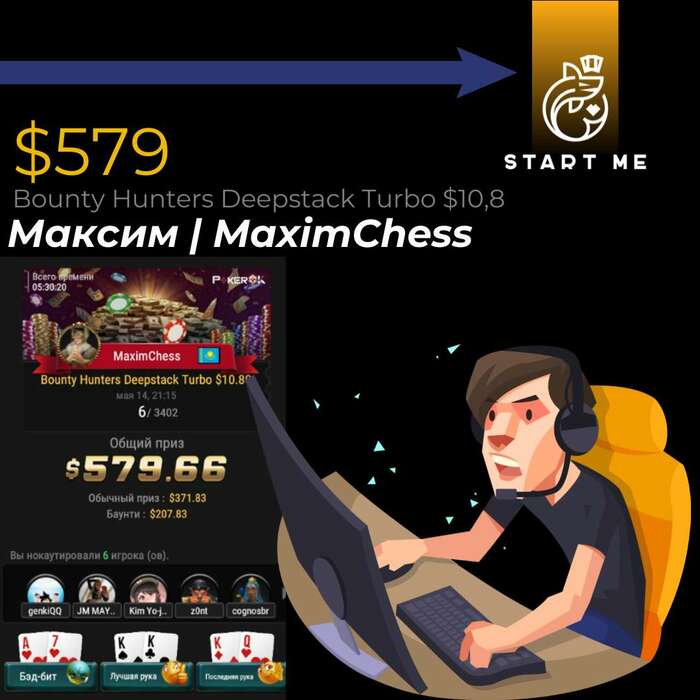 - Максим | MaximChess: $579 - Bounty Hunters Deepstack Turbo $10,8 (GGPokerok, 6/2719)