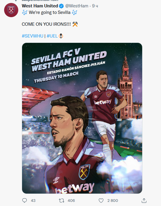доставить проблем может и Вест Хэм, в АПЛ они обыгрывали Челси, Ливерпуль, Тоттенхэм, в одном из кубковых матчей прошли Манчестер Сити по пенальти, в другом кубке выбили Манчестер Юнайтед...а тут надо пройти Севилью - вторую команду турнирной таблицы Примеры. вызов принят что называется.
