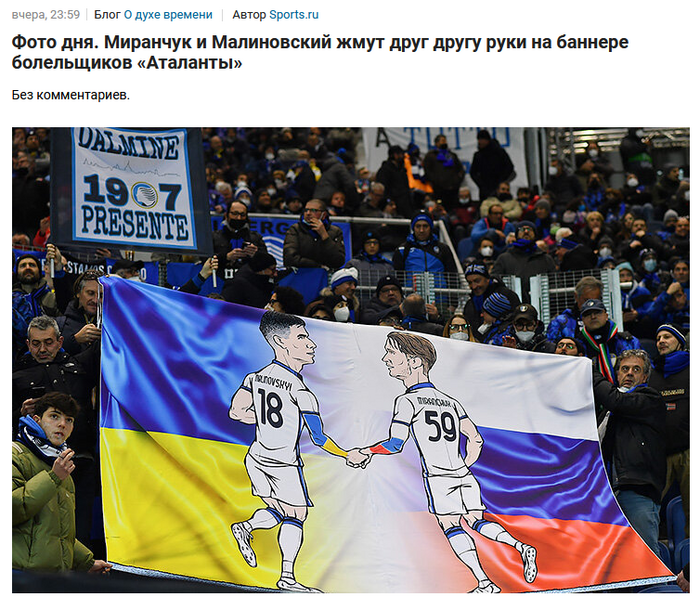 Это баннер об уважении двух мужчин. Мужчин из разных стран. Мы не знаем, когда такое будет возможно в обычной жизни вне футбольной команды. Но хочется, чтобы такое когда-нибудь было. тут