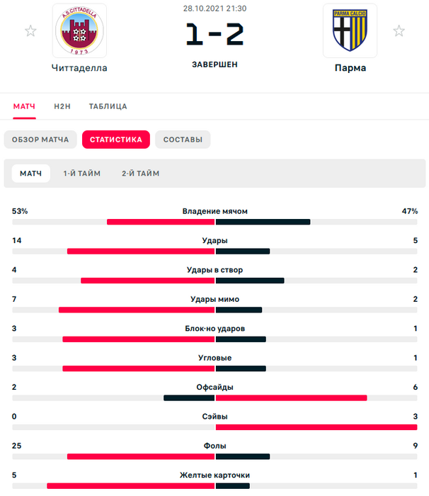 Хотя по просмотру, Парма была опаснее у ворот соперника..