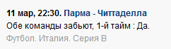 ну в общем как то так.. дополню ещё вариантом ТБ(2.5) за 2.0, в первую очередь из-за воротника Пармы и хорошей формы гостей..Читтаделла в феврале в гостях выдала шикарную ничью 3:3 против Виченцы. можно и ТБ(3.5) рассматривать за 3.6