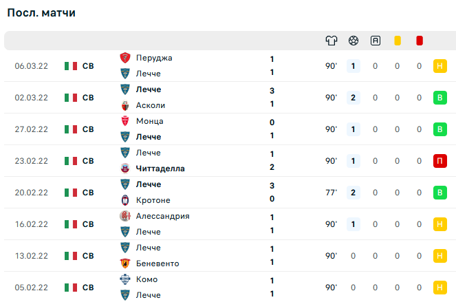 но и они свое дело сделали, будут играть на удержание счета..а это у них получается неплохо..напомню 1 пропущенный в последних четырех матчах на выезде.. и тот от лидера чемпионата Лечче, при счете 0:2 в пользу гостей, и на 88 минуте.