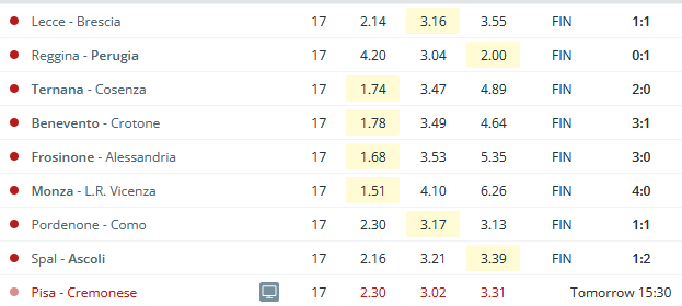 в случае ничьи Кремонезе догонит лидера по очкам, а Пиза выйдет на чистое третье место.