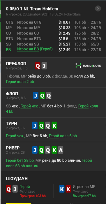 shtulp @ 15.12.21Кроме рук лучше, опп может так играть AQ, KJs, KTs...