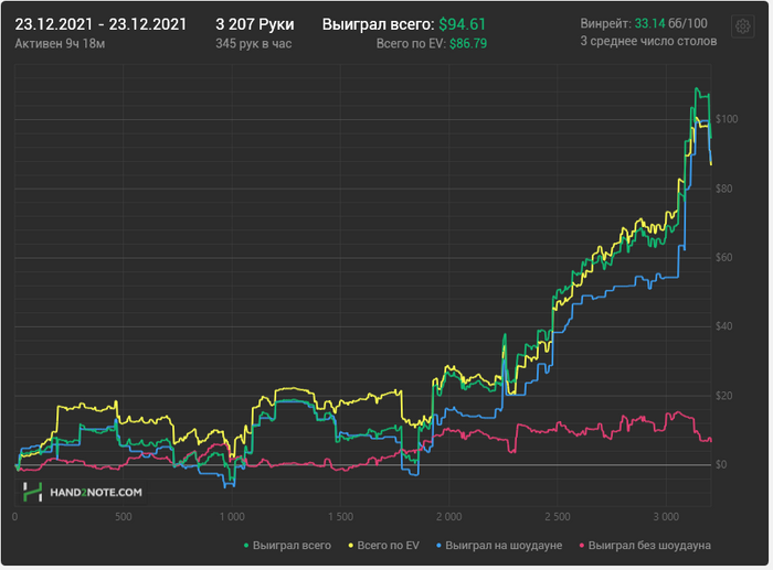 А так бы больше 100 закончил,но за суммой гоняться минус ев. Вообщем хороший был день,наконец то апнуло на 10,ну и думаю моя игра улучшилась.