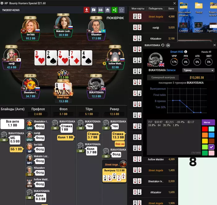 👏 Результаты начальных индивидуальных занятий стали очевидными в этой победе. Алмаз продемонстрировал, что даже при ограниченном банкролле можно добиться впечатляющих результатов, благодаря упорным тренировкам и страсти к покеру.