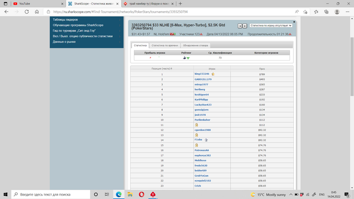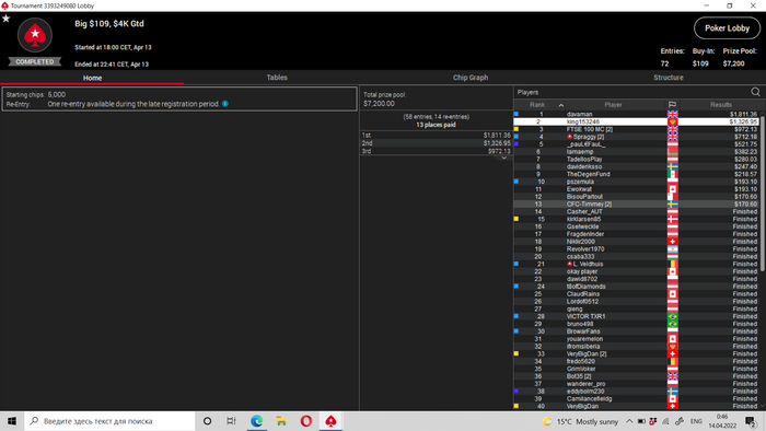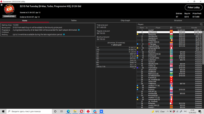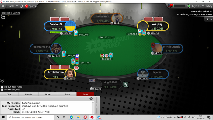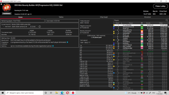В минус 2,5 к улетел(на частичную отмазку остался только 22-й хот) Пришлось с неохотой закрыть 10 бб бвб против любителя с К8с, там АДо, чуда не случилось. Настроение весьма паршивое.