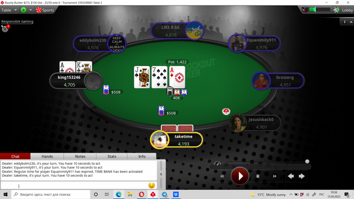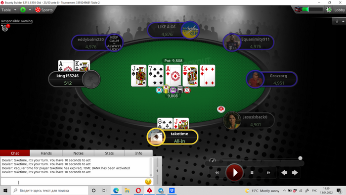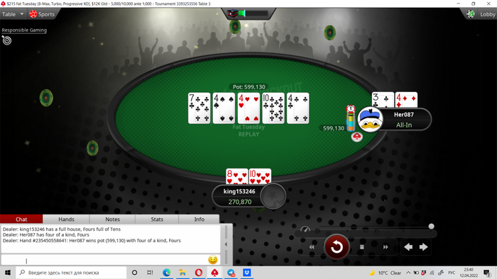 Получая топ фул в каре, прямо скажем, неудивительно)