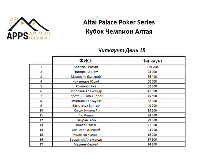 Павленко - . У него стэк чуть меньше стартового.