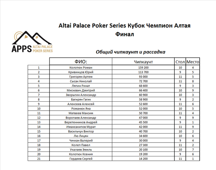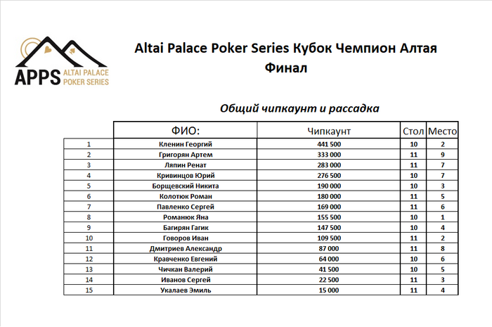 Участники финального стола: