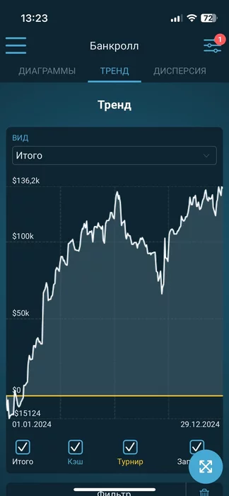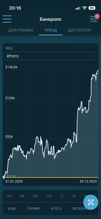В итоге 1280 рабочих часов и не такой уж и плохой покерный год вышел.Из забавного это то что последние две недели курс фишки повысился до 100р,так что выиграли чуть больше чем раньше))Но как будто можно было лучше,плоховато играл местами на верхних лимитах.Начал поигрывать омаху получил кое какое опыт,точно пригодится.Это кстати был первый год который я полностью провел в поляне,о чем ни капельки не жалею.