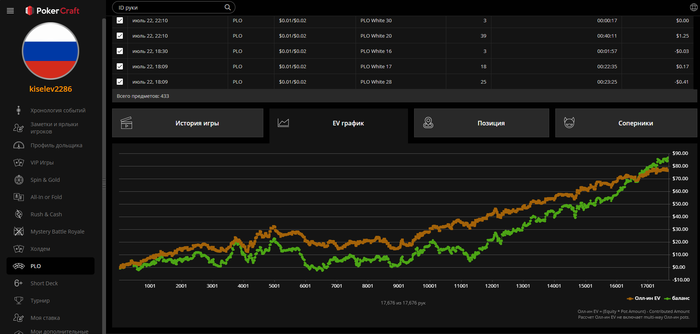 честно сказать про мой порнографик с plo 0.02-0.05 не кто не чего не писал, хотя там меня переезжали как хотели. Меня вообще графики не особо интересуют кроме зелёной, для меня покер заработок не больших денег для вещей на которые я не хочу тратить деньги с семейного бюджета. Я не работаю есть жена, двое детей. Жена тоже не работает. Нам хватает. Денег жить хватает. у меня была цель в жизни чтоб к 35 годам я мог проводить время с семьей и жить в удовольствие не работая. Я вырос в бедной семье. Я этого добился. А покер это хобби которое приносит мне не большие деньги для некоторых мелочей.