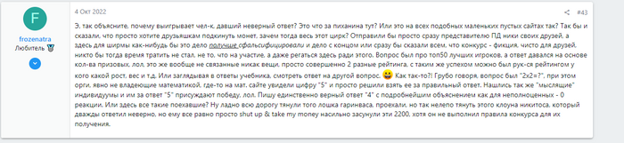 Да, жизнь не справедлива - кто-то побеждает в розыгрышах, а ты вынужден искать конкурсы в интернете, создавать арбитражи на итоги конкурса, и доказывать что победил именно ты: