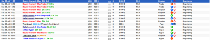 Я все ещё думаю, но скорее всего буду играть что-то очень маленькое и желательно с быстрой структурой. Там есть, 1к, 1.5к и 2к grt, по 109$. Какой-то из этих сыграю, они выходят как мини мттснг, думаю там какая-то вероятность у меня будет попасть в какие-то хотя бы деньги, в большое поле и рег структуру лесть не вижу смысла, постфлоп мне будет сложно и в абсолютном вакууме глупо, ради одного шота.