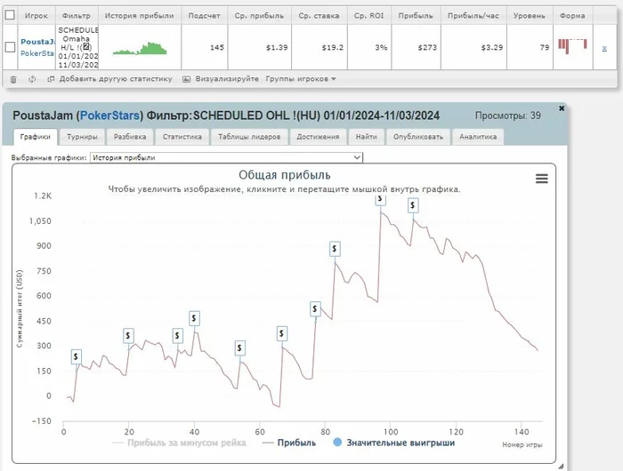 На текущий момент я играю 10ки веник. Ноябрь отыграл 7500 туриков в чипы ГС, в пуле не состою. По деньгам вышло 2400. Столько всего перепробовал и в этом году, и в прошлом, а по сути опять пришел к заработкам +-2к. Не получается пробить это сопротивление :(