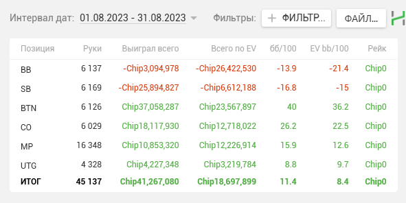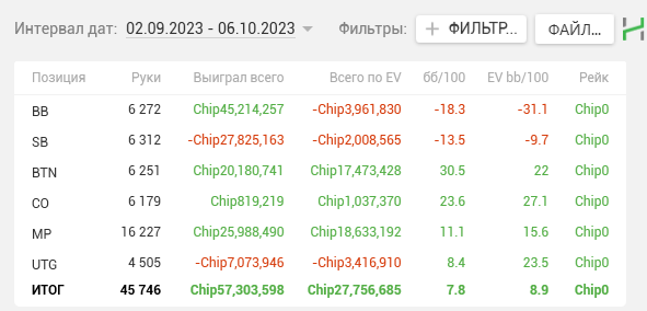 В августе появилось ощущение, что только сейчас начал по-настоящему работать над игрой: помимо просмотра видосов и удивлению от того, что есть кнопка овербета (который реально работает, кстати, если не ставить бездумно 😜), начал работать с софтом. Впервые в жизни посчитал раздачи в хрк. До конца кальку не изучил, но выше не поднимусь, пока не научусь пользоваться хрк: в команде есть экзамен на умение работать с прогой, без которого не повысят