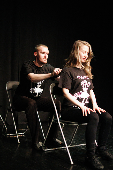 Занятия проходят раз в неделю, длятся без малого 3 часа. За это время отрабатываем много разных тем и ситуаций, учимся взаимодействовать друг с другом в режиме здесь и сейчас, без сценария и подготовки. Ну ето ж импровизация ёпта 😈 Большинство людей очень активные, есть и те, кто пришёл на курс для работы над собой и подавления застенчивости, но бо́льшая часть весьма энергичные