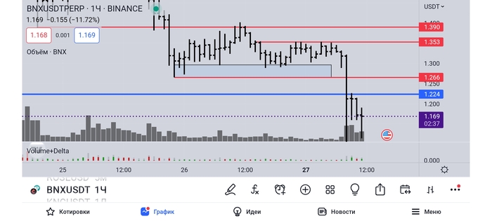 BNXUSDTфьюч, сделка 1 к 4, по идее цель до 1,267, но не додержал, к сожалению(((