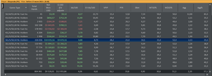 Если кому-то, из читающих эту тему, не жалко купить руки на Алексюку за этот период около нулевой дрочни, то хотелось бы на примерах фильтров в х2н/хм3 посмотреть, сколько там сыграно действительно качественных столов (под жирного фиша, в позе на фиша и тд), а не регваров 3-4макса. Не нужно ссылаться на то, что так игра набирается на старзах, никто его не заставлял играть онли старзы, все школы/др.блоги тому так же подтверждение, что есть условия куда лучше на других площадках. Если же выяснится, что Алексей катал бОльшую часть дистанции в говно составах, то о чем вообще может идти речь, если он постами ранее писал, про лучший (?) селект столов на старзах. И тогда отсюда вытекает около нулевая игра.
