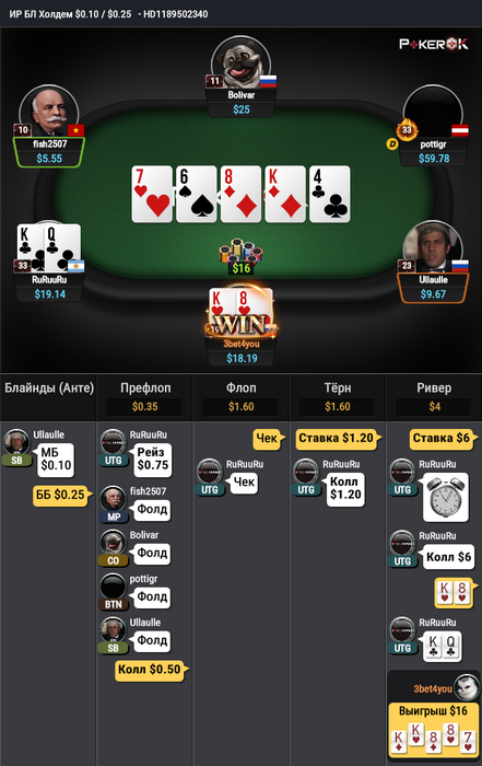 vladegpiston, Овербетом тут репается стрит на . По моей линии много ли у меня . 6 комб карманных и еще 4 комбы s. Маловато велью. За то блефов оч много. Я поставил плотно терн - в диапе много ФД. Плюс много слабых s. Рег с этой поляны оч редко будет ставить допер в овербет (Я такого не встречал еще) Хотя Фиши могут конечно пот бет поставить) Я бы тоже с инста колил бы.