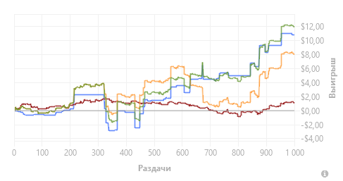 Sibarit87, и зачем мы тогда банк раздували? Чтобы безвольно сдаться на 70% досок (ведь даже на ваших досках Ахх, Кхх вы ничего не сможете сделать с этой рукой) и прокинуть свою часть эквити?