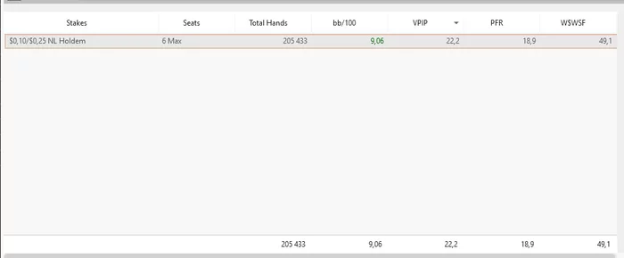 Сегодня была 5-ая сессия, я уже не делал ошибок в больших банках, но было много помарок и неточнностей в мелко - средних банках, ещё и ран такой ублюдский, что я был расттроен уже почти сразу после старта, там трипс опп поймал там любитель доехал в сет против моей ТП и вот я уже понимаю что А гейма и след простыл. Один день ошибки в крупных банках, второй день в мелких, что будет в следующий раз, наверное ошибки будут сыпаться во всех спотах? Ну тогда это будет просто фиаско. БР у меня не глубокий, кэшауты регулярные и это тоже давит, я вижу как на счету становится все меньше и меньше денег из недели в неделю. А ведь ещё недавно я отмечал что винрейт последних 200к рук овер 8бб, и пару появлений в числе топ винеров месяца тоже подстегивали меня а не загоняли на моральное дно