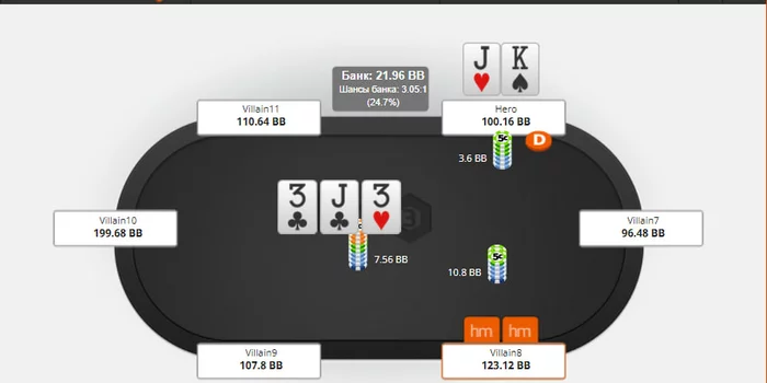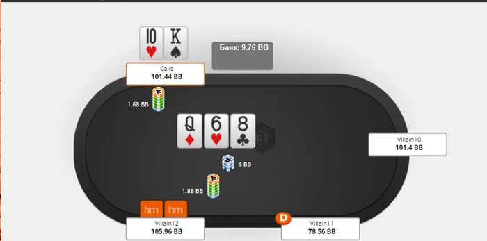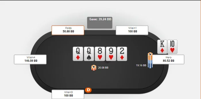 какой диапазон контбета флоп мы ставим в этой ситуации за бтн? 100% или имеем чек бек?)