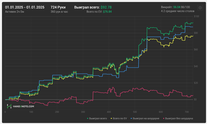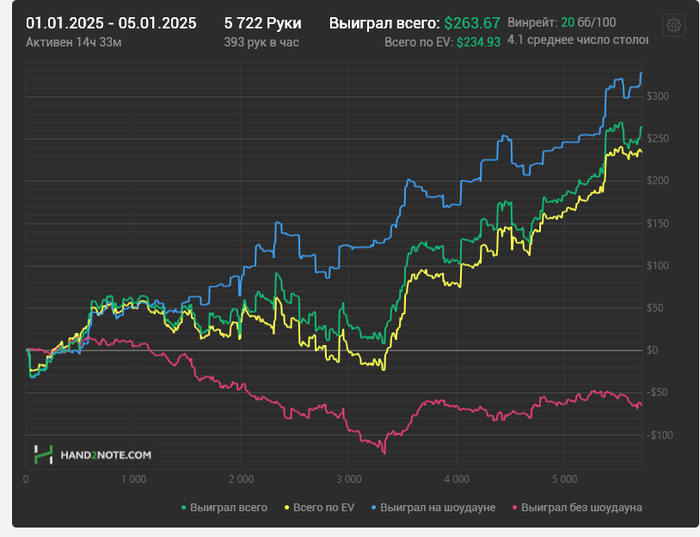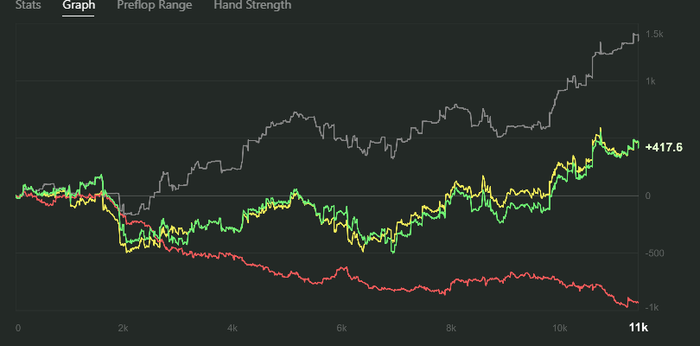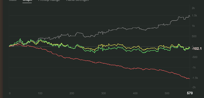 Евэху так и не догнал. Показал 5,5бб/100. Для меня, играющего в минус Рэйкбэк это супер прорыв!
