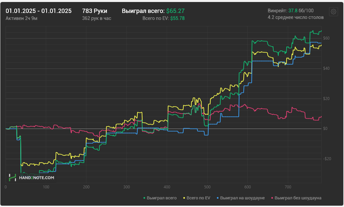 Пока получается 50% рук с игоками с ВПИП 50+, 60% с 45ВПИП, не легко найти в еврорумах таких достаточно много, но все же не 40 как играл обычно.