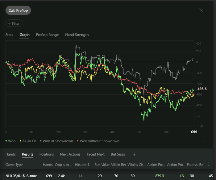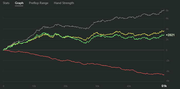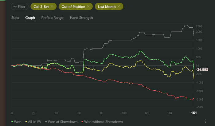 Поиск ликов - кривых линий, ошибок префлоп и т.д. Нужно найти почему утекает винрейт с ранних позиций, ББ, БУ. В прошлом месяце только СО отыграл хорошо. Блины лучше, но я знаю могу играть выше. Надо понять, диспа это или я что-то недотягиваю.
