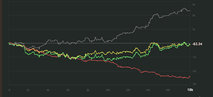 Резы просто жесть. Накулерился до задницы. Проиграл 90% месячного профита (на лимите выше). Но кроме кулеров есть и лишние колы ривера. Никак не избавлюсь. Тема психологии.
