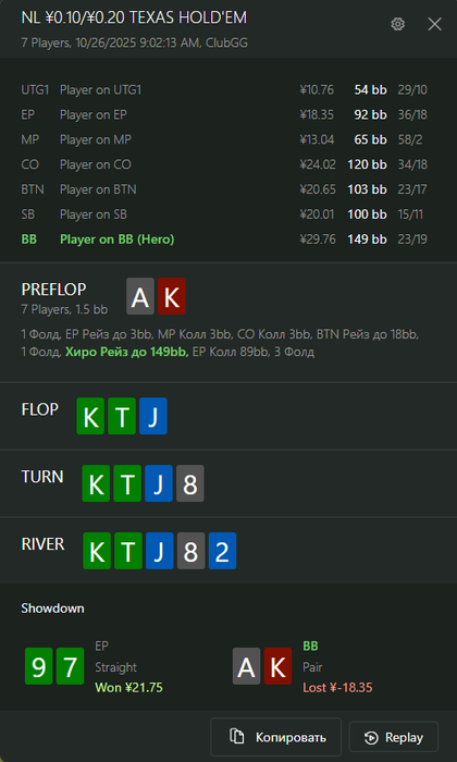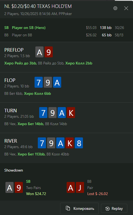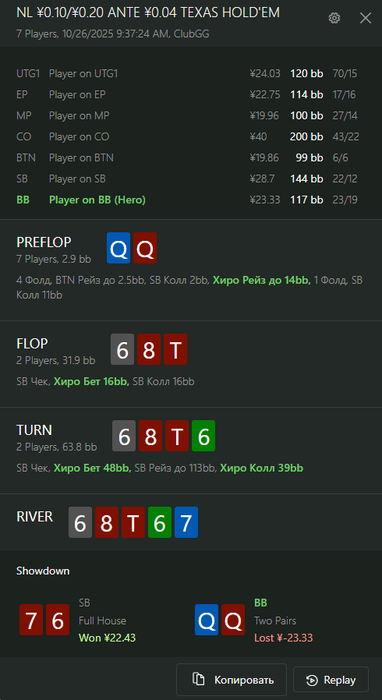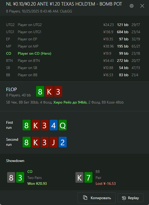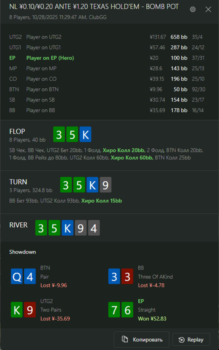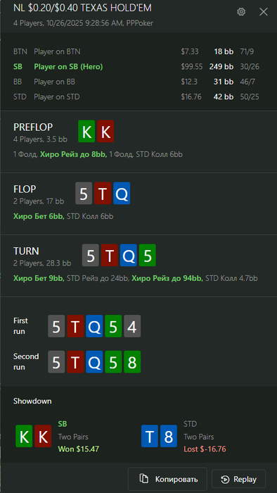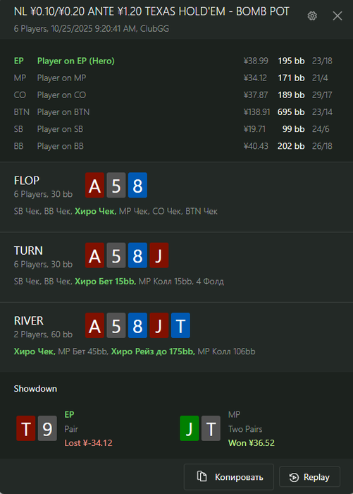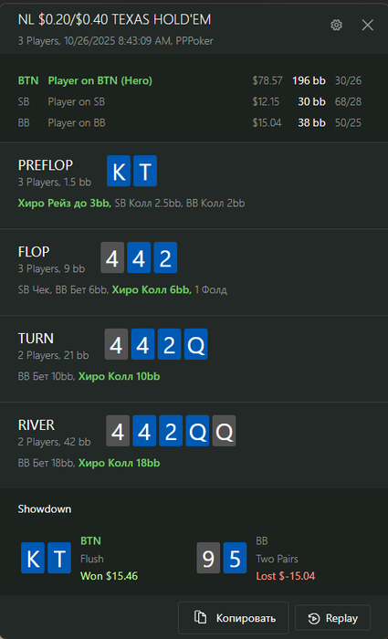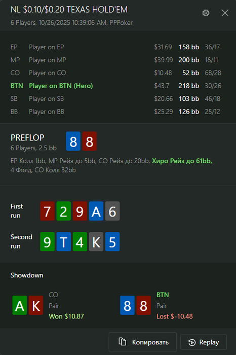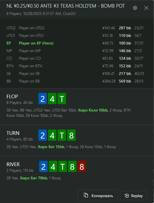 Есть одно упущение. Когда играл в прилах, то после каждой сессии сарался резы выложить и раздачи немного проанализировать, но перейдя на покерок этот ритуал ушел в небытие. Возобновляю.