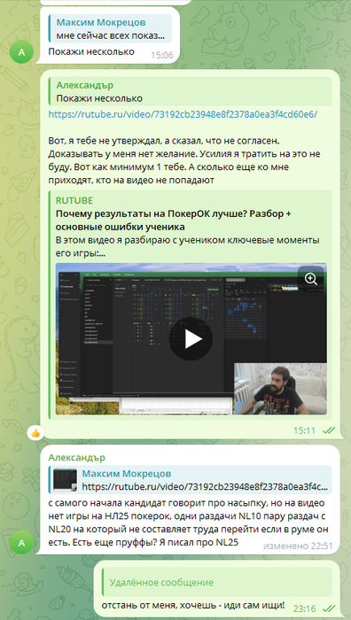 Бля. Это был просто мат. Я не выдержал!!! Хотя и хотел стопнуть общение, но я ответил, где пропадал и конечно...