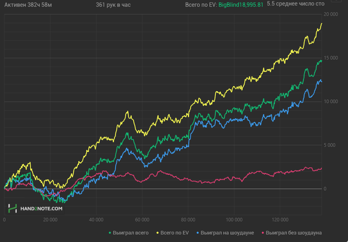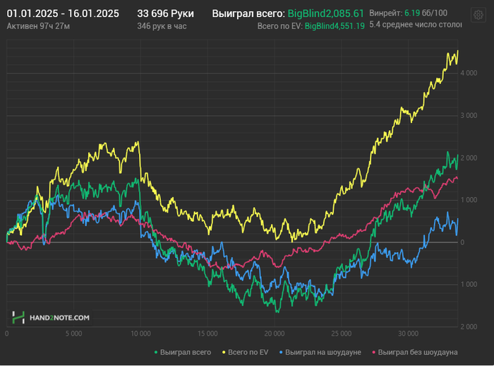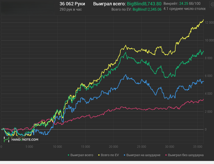 Интересная тенденция по красной, в целом я в последнее время много внимания уделил солверу, в частности анте столам, что, возможно, выливается в результаты по красной. Но 25 очередных стеков недобора на 30к рук - это уже за пределами разумного, если честно.