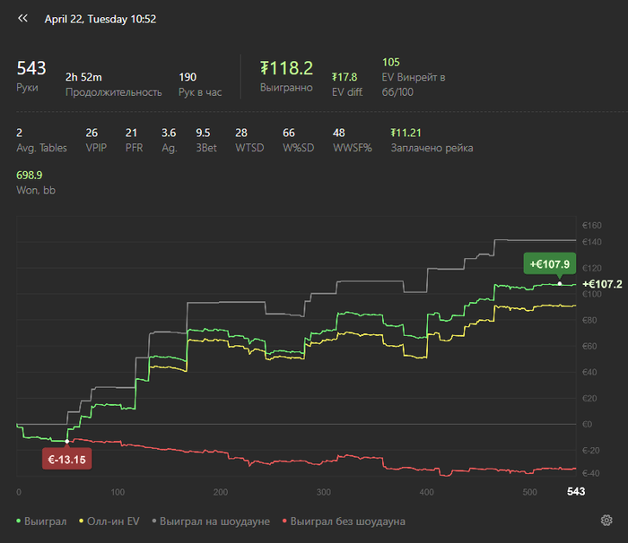 С Романом "aldair68" подвели итоги марафона прохождения микролимитов. Марафон в цифрах: 🟠147 часов игры 🟠34 тысячи раздач 🟠18 бб/100 🟠С 50 долларов я пробустил банкролл до 1000 долларов 🔥