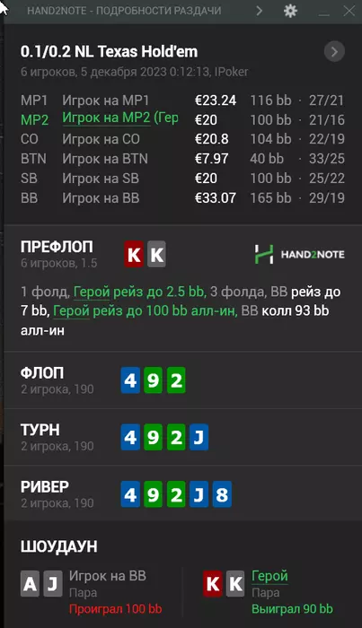 Самая последняя раздача,когда уже закрыл все столы, получилась вот такой: