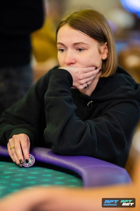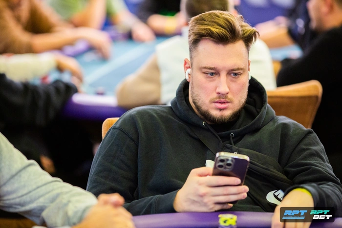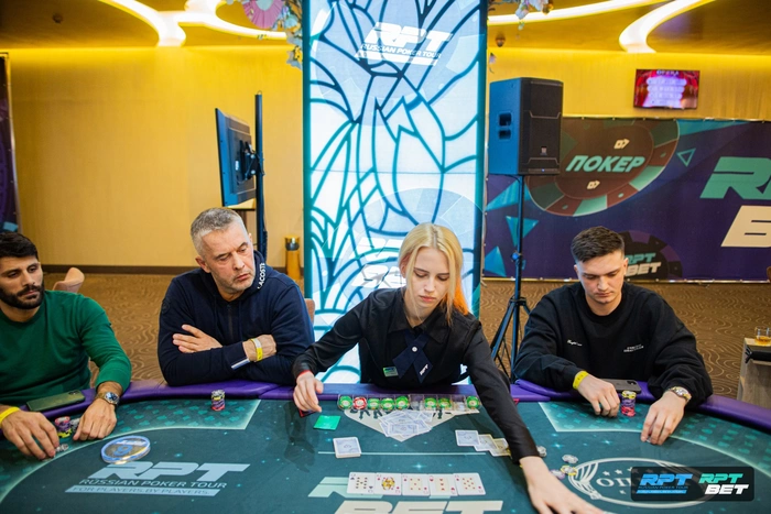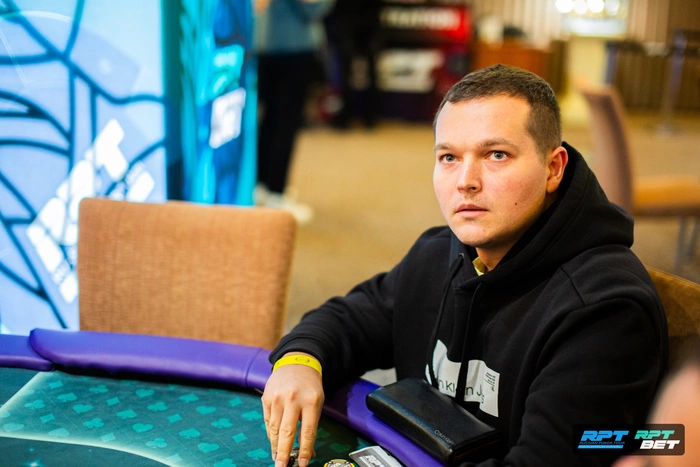 Александр уже попытался пройти в первом флайте, но не вышло. Во втором пока идет неплохо, имеет средний стек.