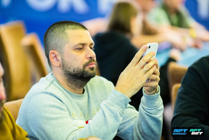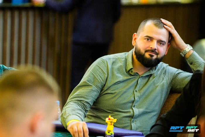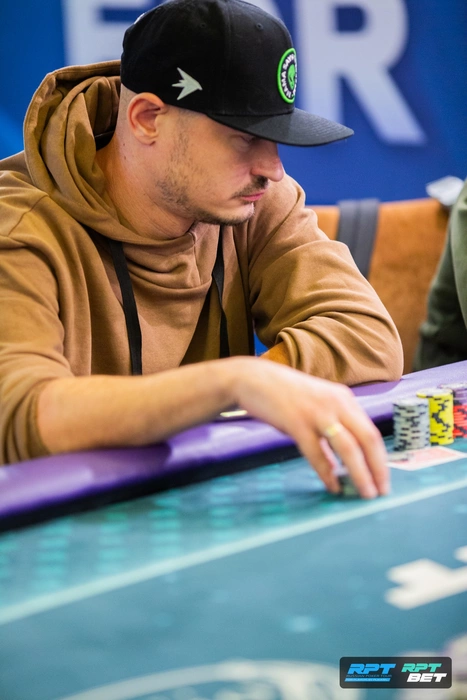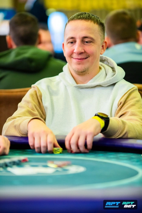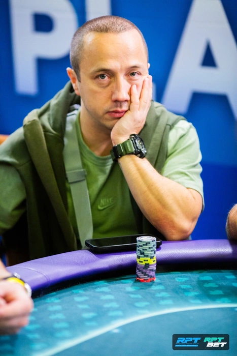 Посмотрел на каре троек Юрия и выбыл из турнира. Но чуть позже объяснял логику розыгрыша и какие руки из диапазона Акуленко он пытался выбить.