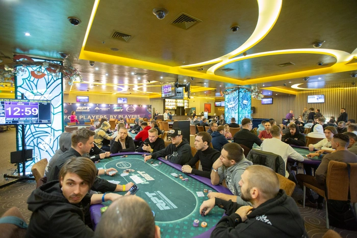 В 16:00 начнем $135 Main event (Stage A) (GTD $165 000). До конца поздней регистрации (10 уровней) блайнды будут расти каждые 20 минут, после закрытия — каждые 15. Стеки 20% участников переносятся в день 1А главного события.