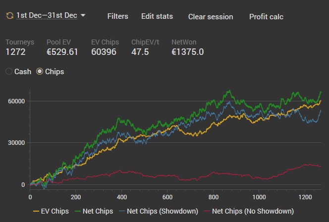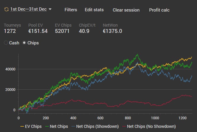 Пока месяц выглядит вот так. Эх, а как хорошо начинался, в моменте было 70 фишек на 500тур. Хотелось бы верить, что это я так играю, но меня просто откровенно перло 😆