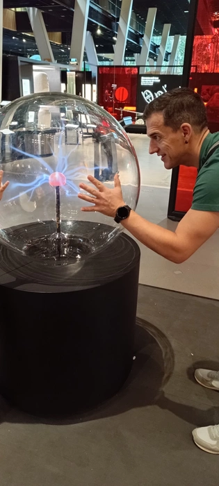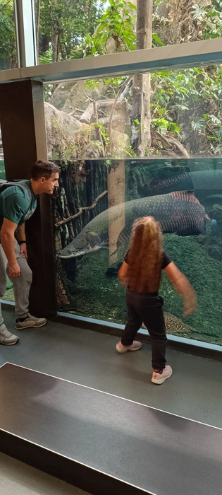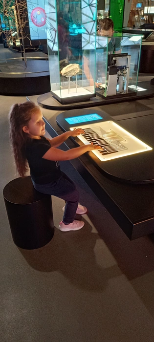 На второй день между посольством и поездом успели посетить музей естественных наук. Там большой террариум с отдельной искусственно созданной зоной тропического леса. Выставка скелетов динозавров в полную величину. И большой зона всяких приборов, которые можно крутить и нажимать самим и которые показывают воочию разные физические законы. Оксана конечно не всё там поняла, но на кнопки радостно жмакала.