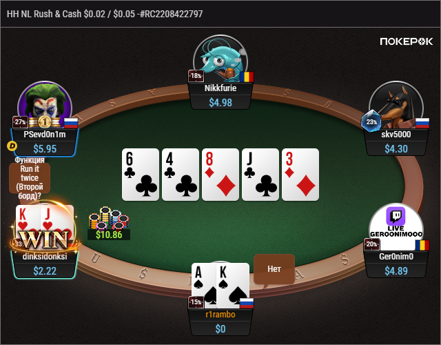 66FAUST66, блин ну подумаю над этим)) просто я когда заходил во всякие там фрироллы или самые дешёвые турики, вообще как нуб сижу в этом 9-максе, не понимаю кого с чем рейзить/колить)))