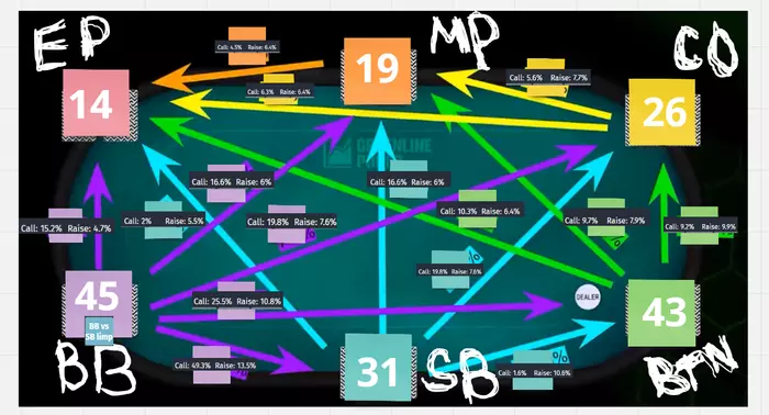 Это будет что-то вроде АБЦ помощника для меня, как действовать в той или иной ситуации за столом (самую базу). Сначала будет просто картинка с рендж диапазонами