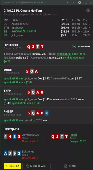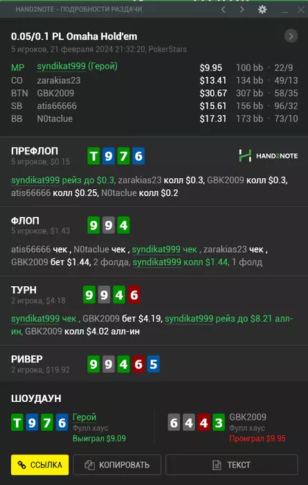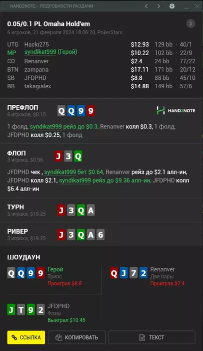 2) По тёрну были отличные блокеры, поэтому решил поставить... Как бы вы сыграли по риверу?