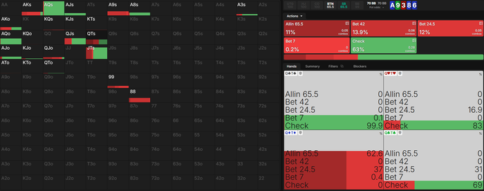 На флопе я бы тоже очень часто ставил именно 1/4 с топ руками, которые блочат попадания оппу. Это плохо?