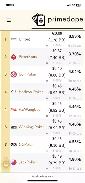 Какой у тебя вообще рейк получается на рег столах? У меня в раше нл2 было 5бб/100, на нл5 раша - 6бб/100. На рег видимо рейк начинается минимум от 10бб/100 я так понимаю