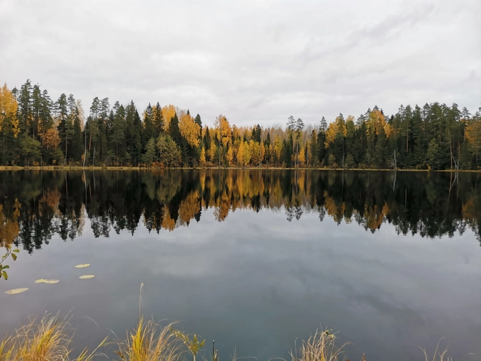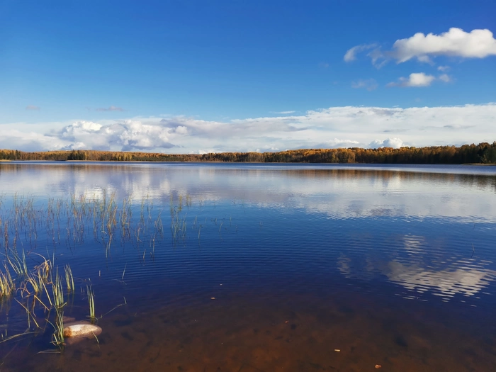 Километр по большому озеру плывем.Потом по лесу пару км-и выходим на маленькое лесное озеро)