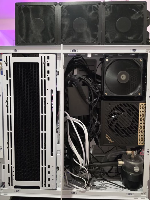 Вентиляторы на вдув нужно брать реверсные, чтобы они не стояли некрасивой жопой наружу 🙈У меня так стоят вентиляторы снизу и с левого боку