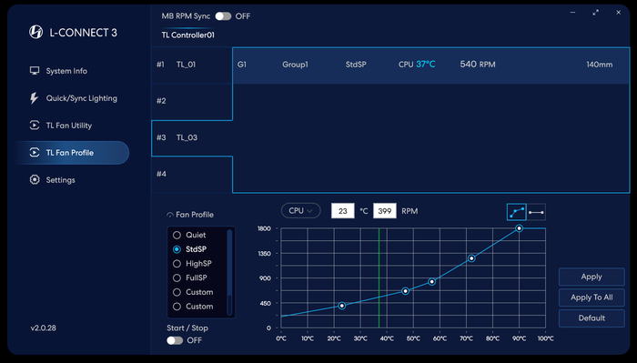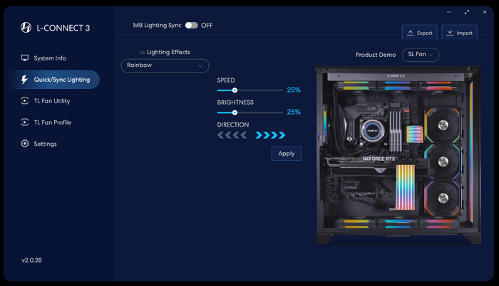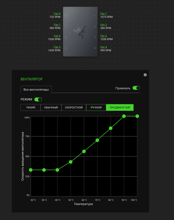 Так выглядит меню настройки вентиляторов LIAN LI, которое мне очень понравилось: