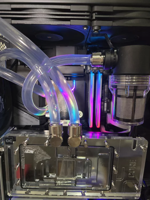 Собрать пк на водяном охлаждении на практике окзалось не сложно. Я уже 10 раз забрызгивал комп водой во время переделывания системы (мой косяк был не аккуратен), ничего не сгорело и не замкнуло. Фитинги легко крутятся руками и надежно держат воду. Чтобы убить комп водой нужно постараться